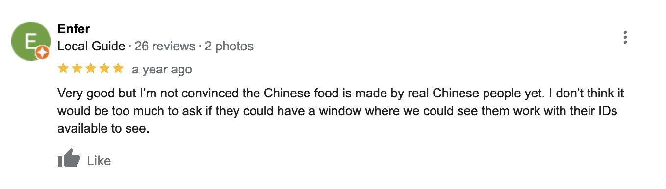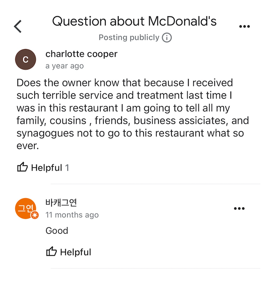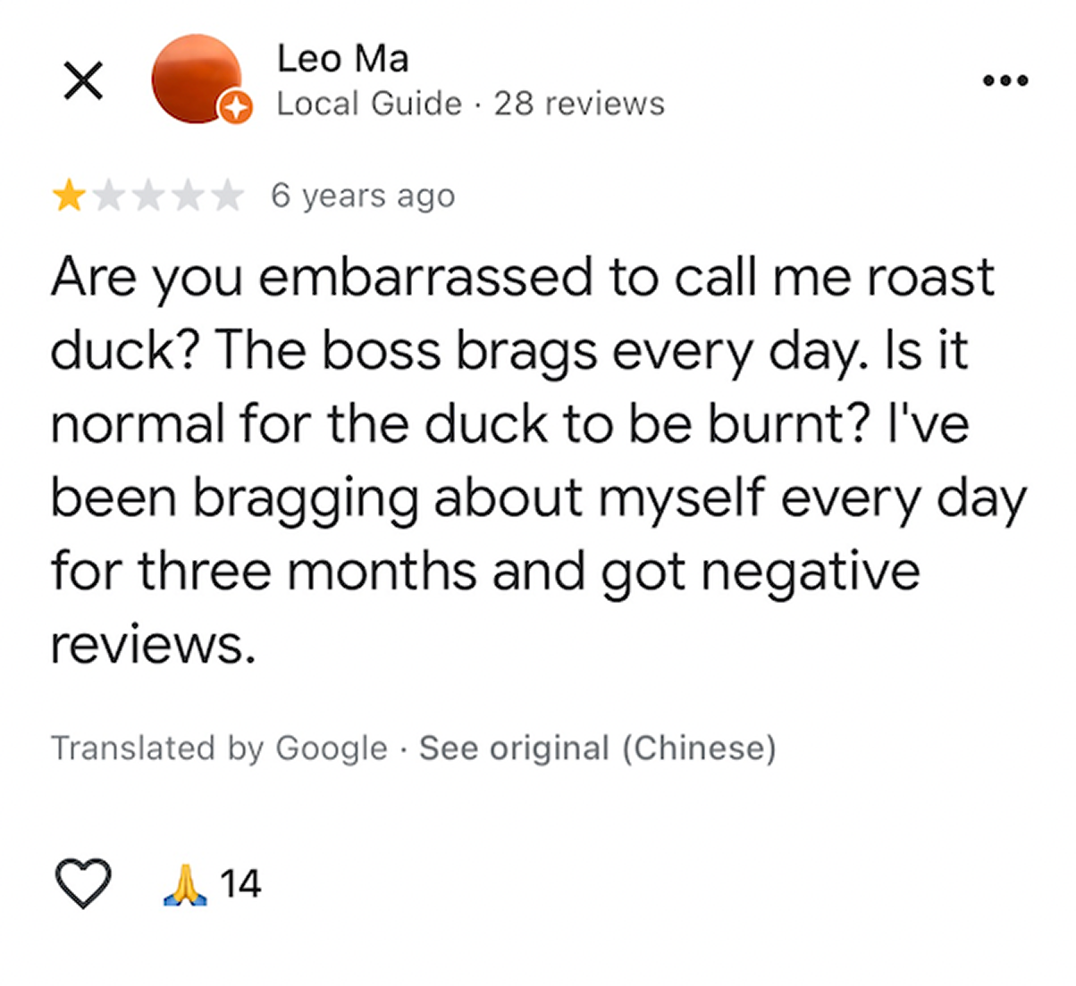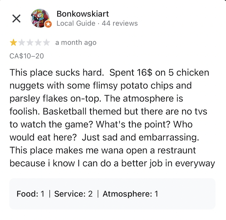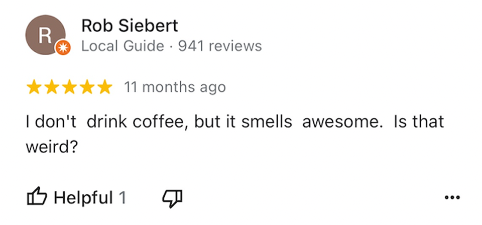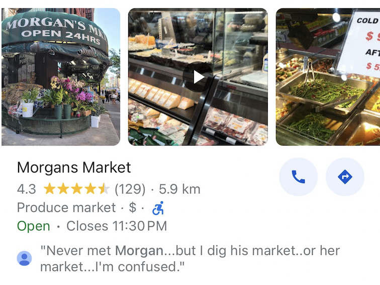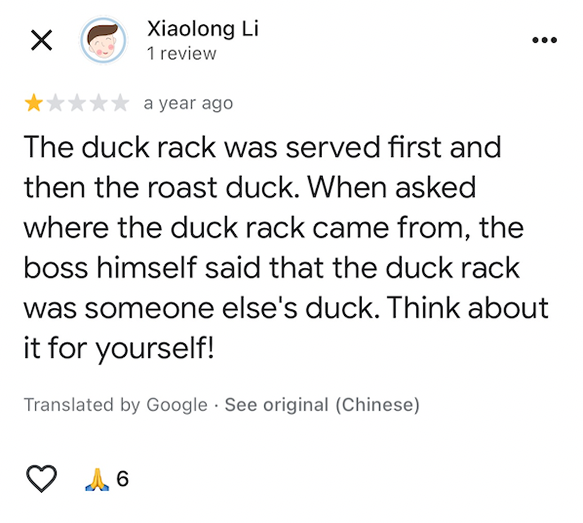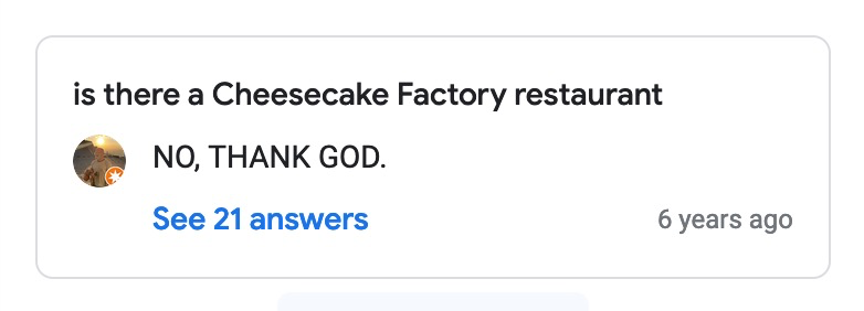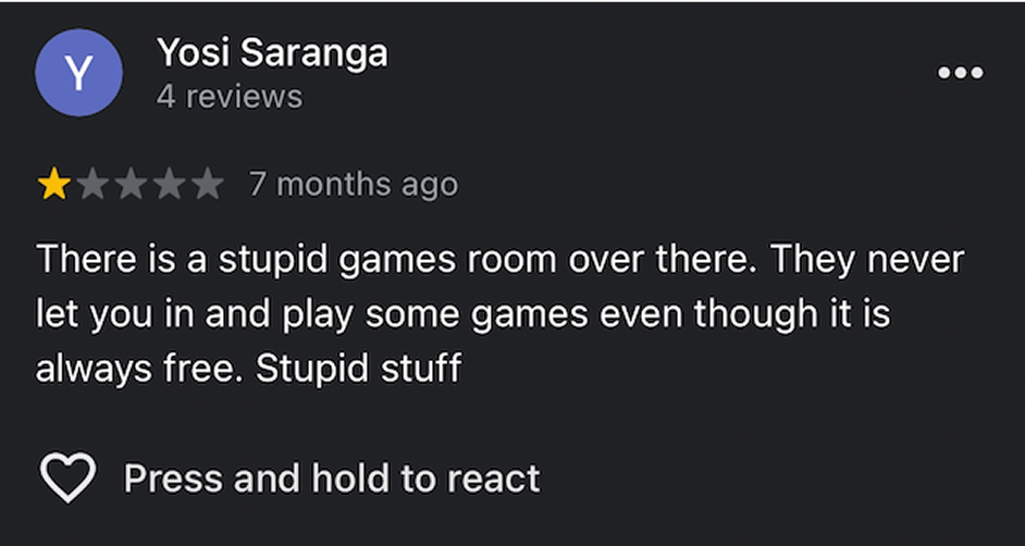 screenshot of a google review reading '7 months ago i took a lot of accidental live photos here, i would have preferred stagnant. i just wanted to capture one moment, i didn't need any of the moments leading up to that one moment. i'll smile for photos because i want to believe i'm happy in most moments of my life. live photos are showing me that sometimes i look miserable right before smiling. anyway, at least food doesn't change much with live photos. it looked and tasted great.'