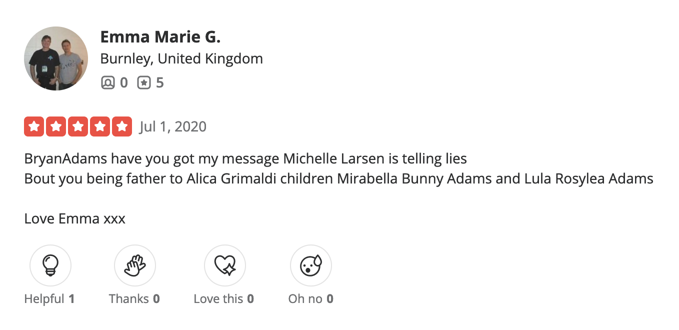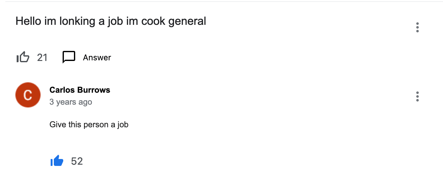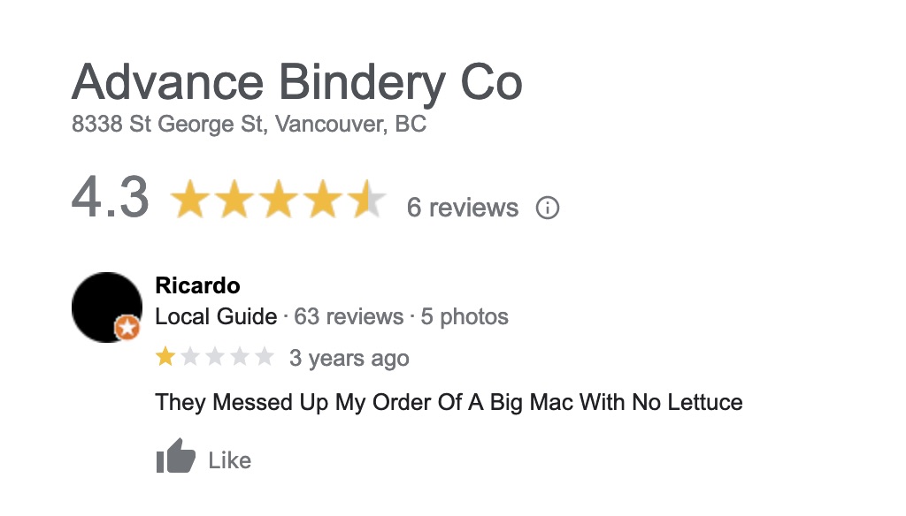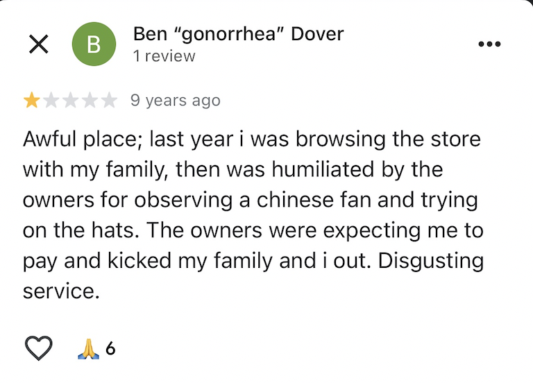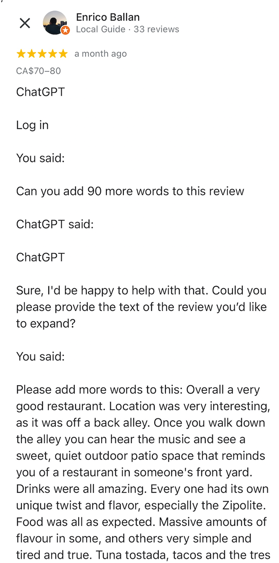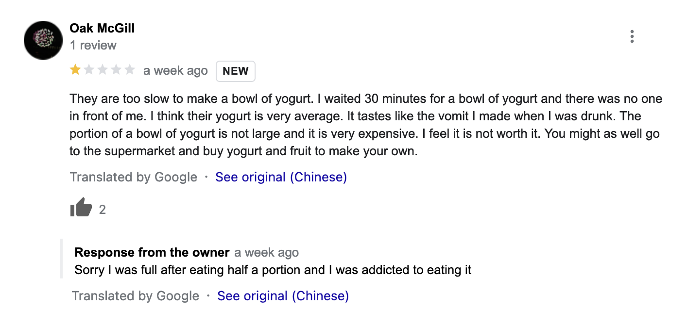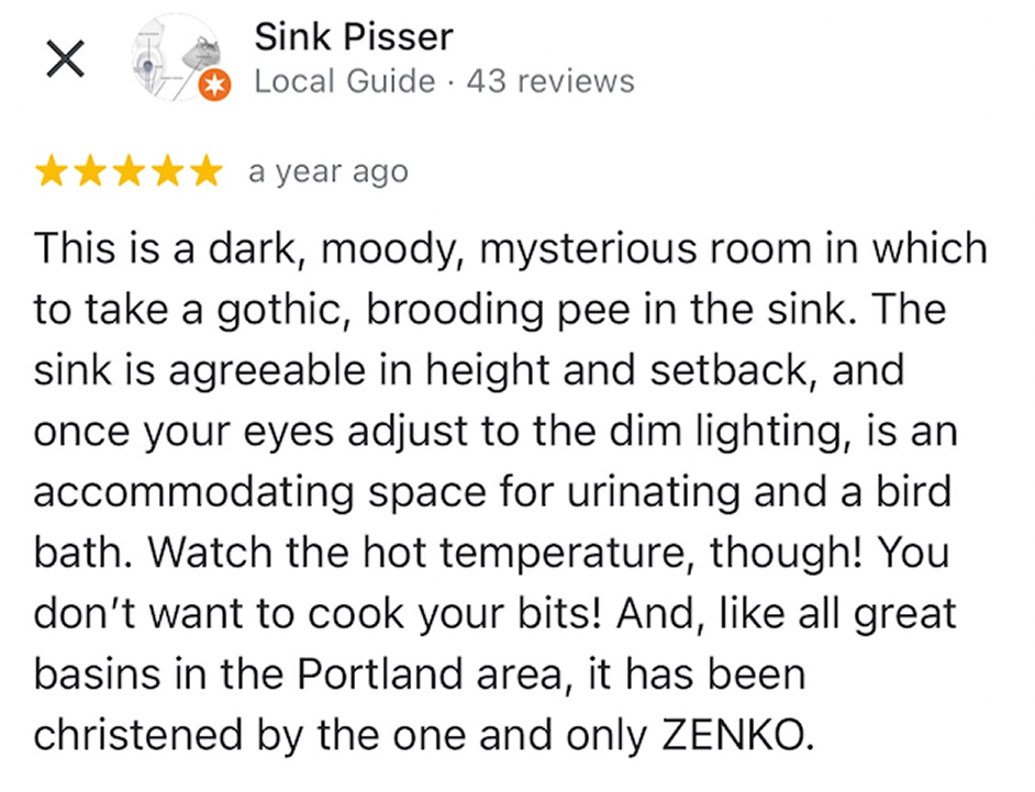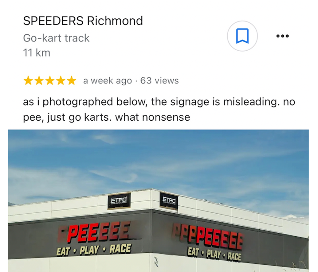 screenshot of a google review reading '7 months ago i took a lot of accidental live photos here, i would have preferred stagnant. i just wanted to capture one moment, i didn't need any of the moments leading up to that one moment. i'll smile for photos because i want to believe i'm happy in most moments of my life. live photos are showing me that sometimes i look miserable right before smiling. anyway, at least food doesn't change much with live photos. it looked and tasted great.'