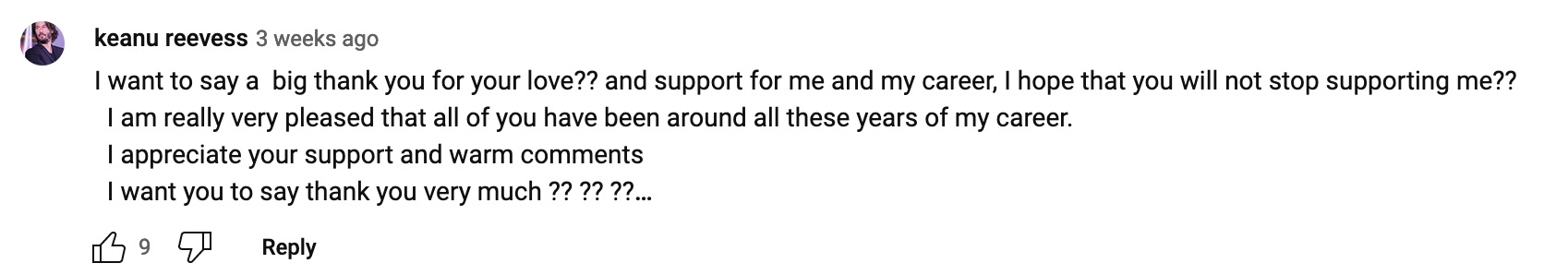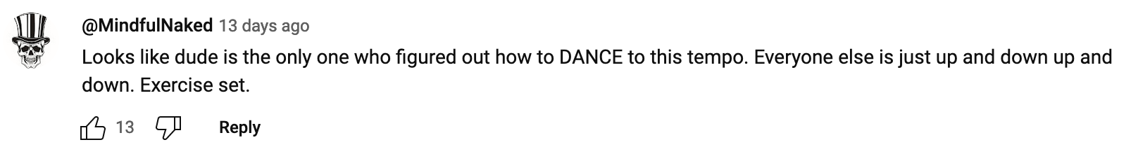 screenshot of a youtube comment reading 'I do not even know your name and I apologize yet as dancer and instructor you are VERY SPECIAL unique to those active or interested in linedancing.......... comparing you with other linedance teacher instructions I believe you had reached the HIGHEST position standing position of PROFESSOR EMERITUS of LINEDANCE long time ago and continue to help us by being ACTIVE. THANK YOU !!!!'