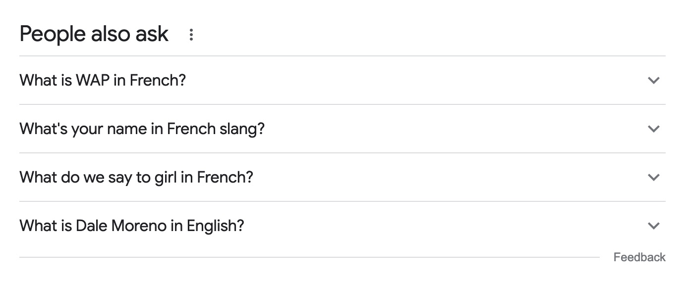 screenshot of google auto generated search results recap for adjectives starting with j that starts off normal and ends off with jammy.co.uk