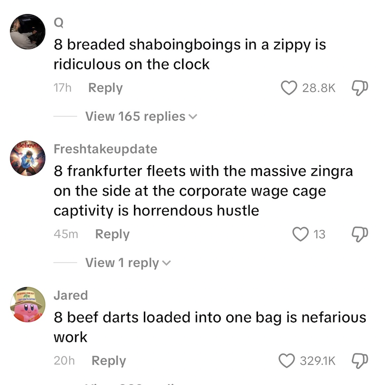 screenshot of instagram user @yourpantsareweird's comment - Ayo i unno if it's cause the za straight schuhlaaaaapin my done rn but I deadass thought those were some gummy frogs on that bocco stick there