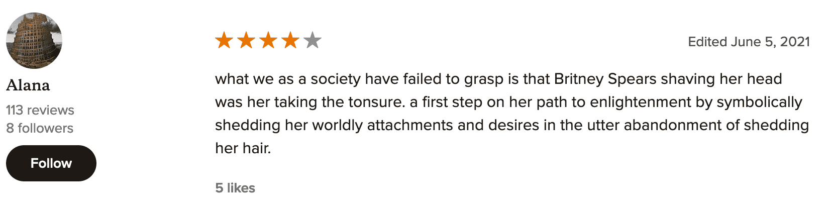 screenshot of a goodreads review stating 'in order to disrupt the continuous revitalization of cybernetic capitalism, i will start answering facebook ad surveys and say that i have never heard of tostitos before'